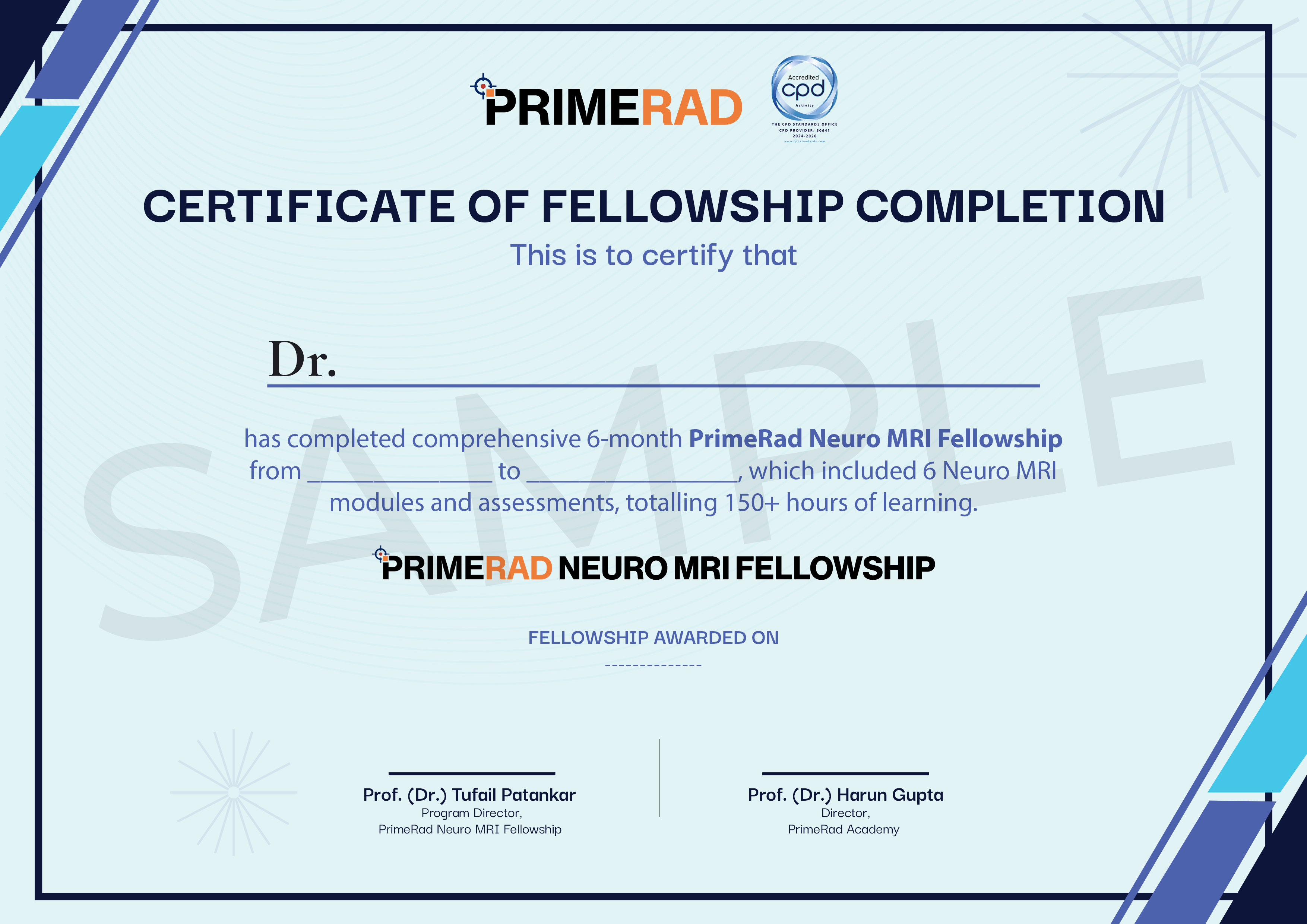 The PrimeRad Neuro MRI Fellowship is currently undergoing a thorough assessment and is on the path to being officially accredited by the CPD Standards Office, UK.